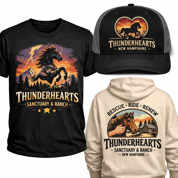 When you shop with Thunderhearts, you’re making a direct impact. Every dollar goes toward feed, veterinary care, and rehabilitation for our rescued animals.
